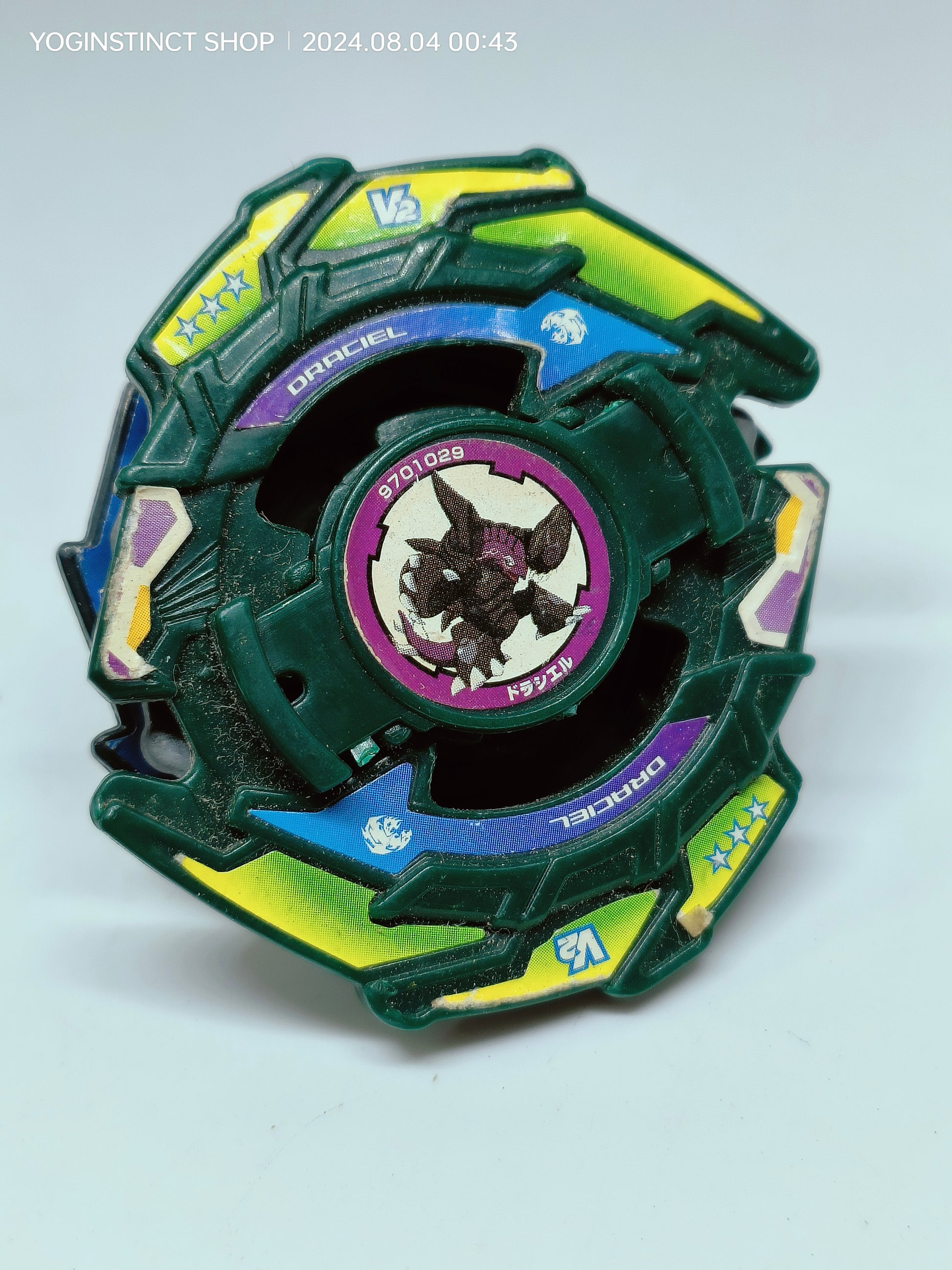 please take a good inspection on the photo's to prevent disappointments. This is a used beyblade and the stickers are not in mint condition anymore.